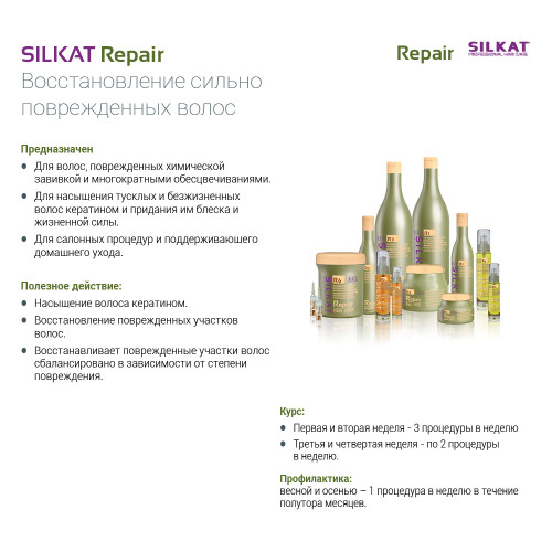 Домашнего ухода в сочетании с другими продуктами линии Silkat Repair