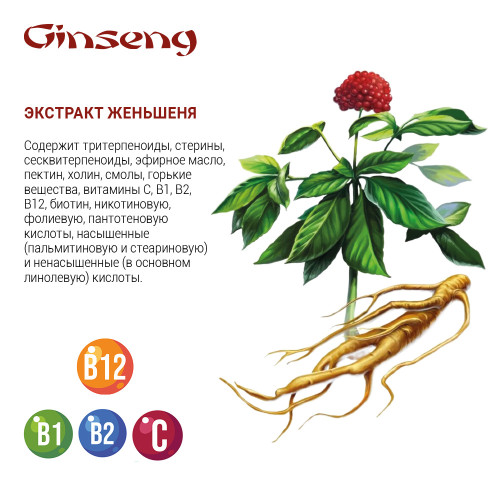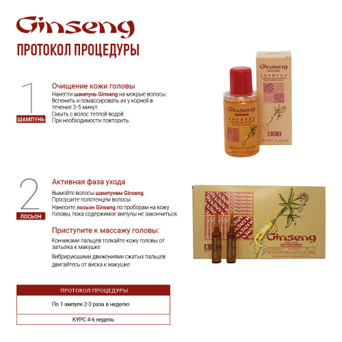• Активный экстракт женьшеня укрепляет, увлажняет и стимулирует луковицы