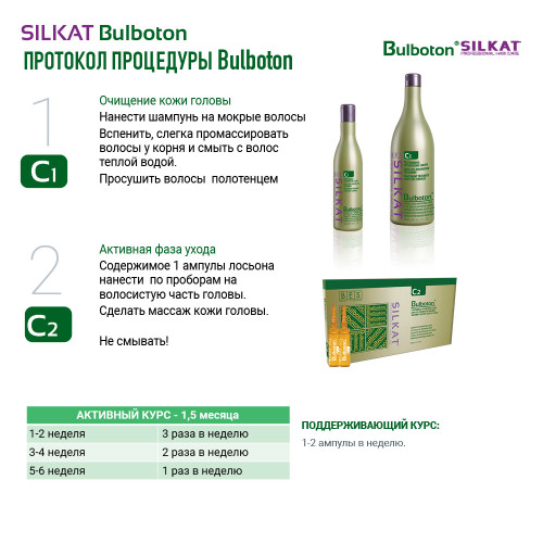 Содержимое 1 ампулы лосьона C2 Bulboton нанести по проборам на чистую кожу головы